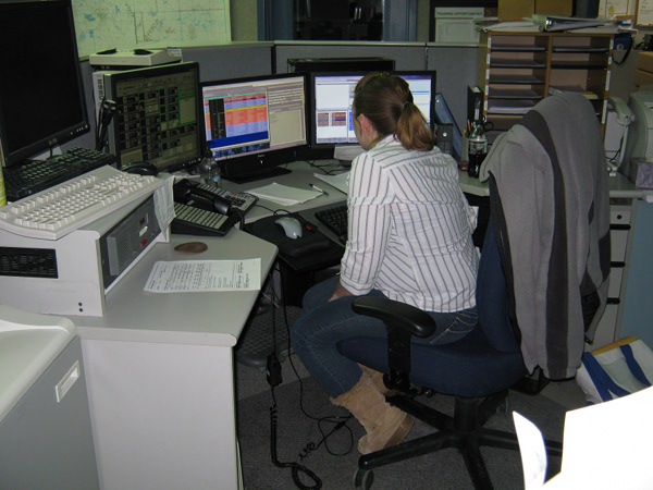 Kristen scanning the screen for EMS calls